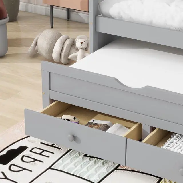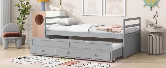 #3 [Robust and Reliable Construction] Constructed mainly from superior quality solid pine wood, enhanced by the strengthened slats for both the bed and trundle platforms, the three drawers are equipped with metal three rails for smooth and quick sliding, while the trundle with built-in premium wheels for convenient pulling and pushing.