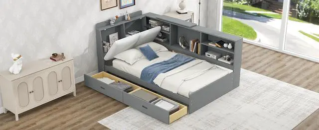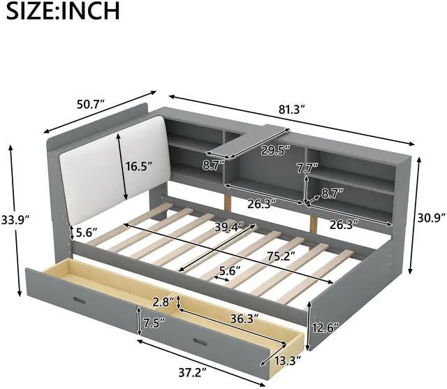 [Multiple Storage Space] The headboard features built-in storage shelves and box. Besides, there are 2 drawers under the bed. Your bedding, toys, mobile phones, and so on can all be properly stored.