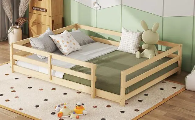 Floor Bed with Fence: The four guardrails of the Montessori floor bed remain intact and uncut, thus this floor bed is more stable compared to ordinary floor beds. The guardrail design is similar to a fence, which not only adds to the product's fun but also creates a safer sleeping environment for children. The height of the guardrails is 15.7 inches.