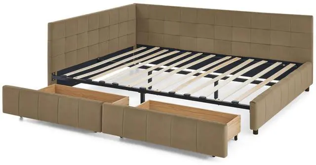 Mid-Century Queen DaybedThis Queen size daybed is designed with a clean silhouette and a hue of elegance. it upholstered in carefully-selected velvet fabric which can perfectly blend in with any color scheme and existing furniture in your bedroom or living room.