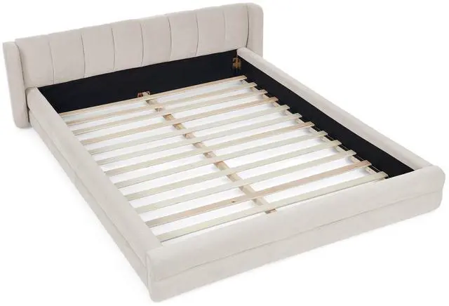 [Unique Grounded Queen Size Bed] - This grounded upholstered bed will be both a beautiful piece in the room and a place full of fun for your family. This beautiful modern queen bed frame adds a contemporary chic look to your bedroom and is upholstered in thick chenille fabric to add extra comfort.