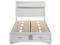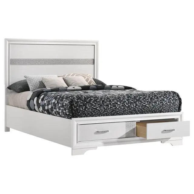 The storage bed features built-in drawers or compartments, offering a space-saving solution for organizing clothing, bedding, and other essentials