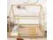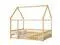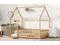 • Full Size House Floor Wooden Bed with Roof Frame, Safety Guardrails,Natural