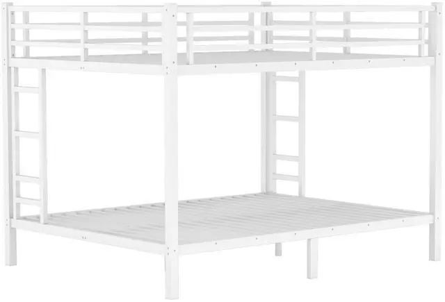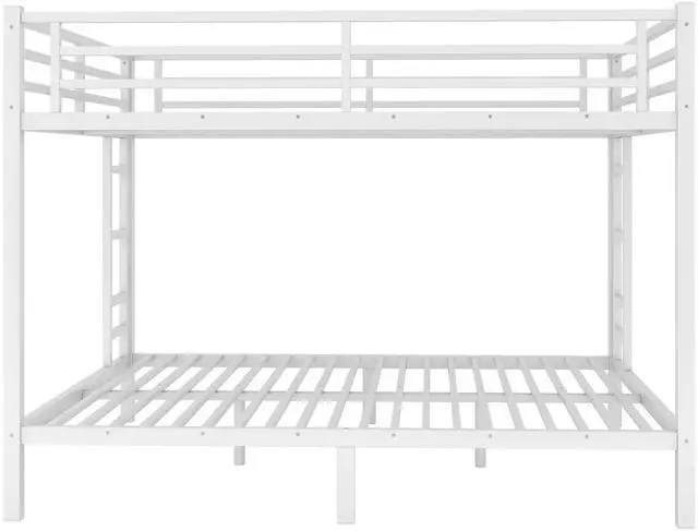 Safety Design: Our Queen over Queen bunk bed has 40 metal slats that has strong supporting force. Bottom bed with thicker legs for reinforcement. The guardrail around the upper bed which enhance safety and prevent accidental.