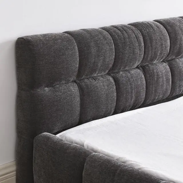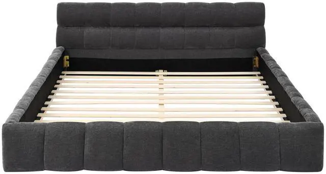 [Unique Grounded Queen Size Bed] - This grounded upholstered bed will be both a beautiful piece in the room and a place full of fun for your family. This beautiful modern queen bed frame adds a contemporary chic look to your bedroom and is upholstered in thick chenille fabric to add extra comfort.