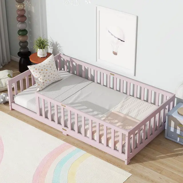 [Perfect for Transition Period] The floor bed facilitates the transition from co-sleeping to an independent sleeping environment, thereby fostering children's autonomy. The fence-enclosed design promotes exploration and freedom within their personal space.