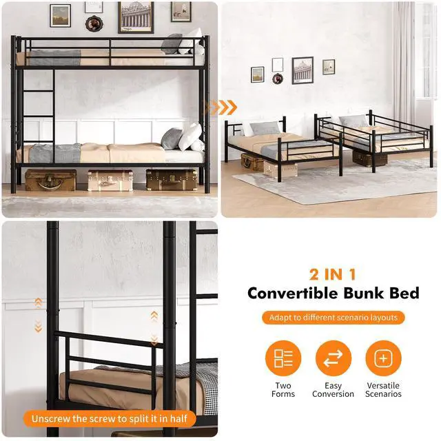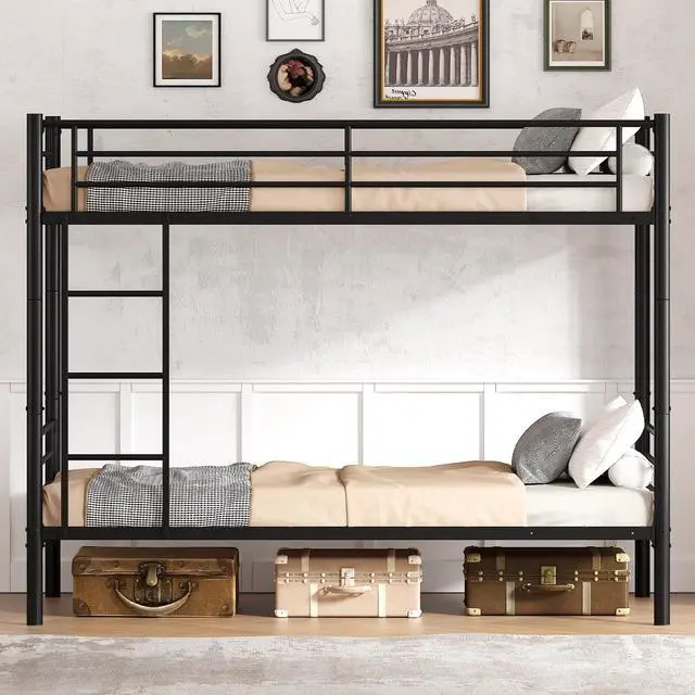 Stylish Design & Extra StorageThe sleek black finish of this twin over twin bunk brings sophistication and elegance to any bedroom décor. The 10-inch underbed space contributes to better organization and tidiness, providing extra storage for your belongings