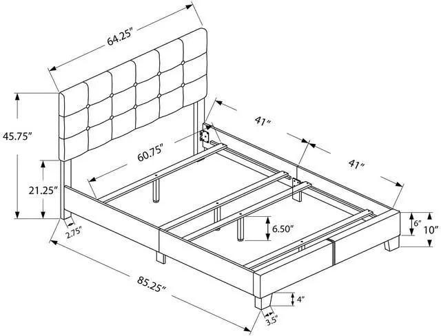 Includes frame, wooden slats, headboard and black block-style plastic legs for increased stability and sturdiness