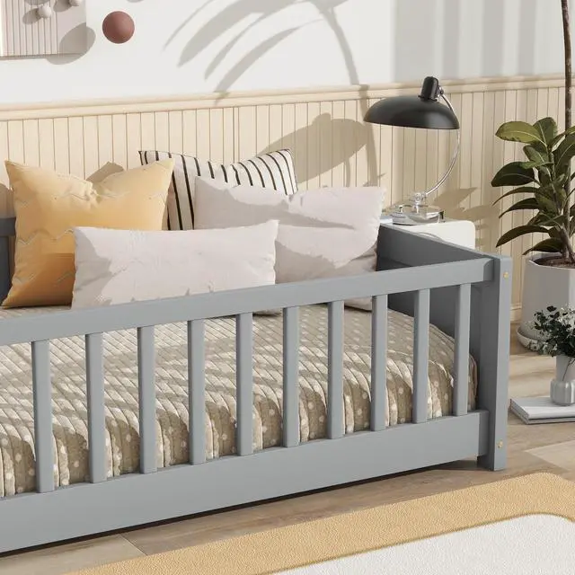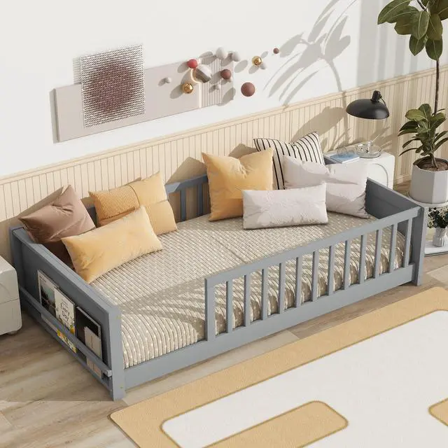 #1[Practical and Protection Design] The floor bed is an ideal place to sleep and have fun in the slatted bed platform. The bed is most suitable to those compact rooms and limited space with guardrails around the bed to protect from any accidental falling off.