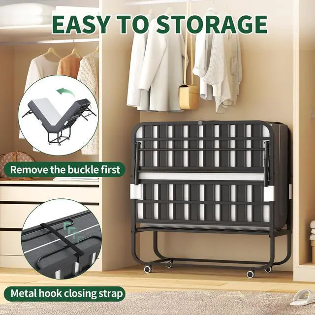 Compact Storage: ** This large bed is surprisingly easy to handle. It folds neatly and features four wheels for smooth transport to a storage closet or under another bed.