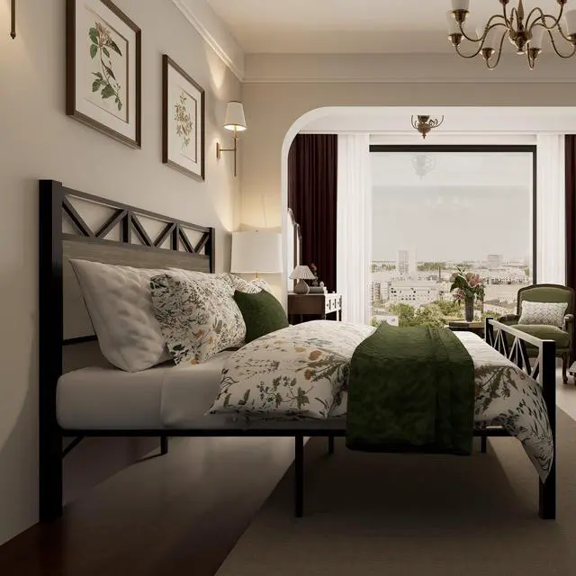 Industrial Style: The headboard of this bed frame is made of wood with a rustic vintage finish, which can add warmth and character to your bedroom décor. The wood material also ensures durability and long-lasting quality. It is the only choice worth having.