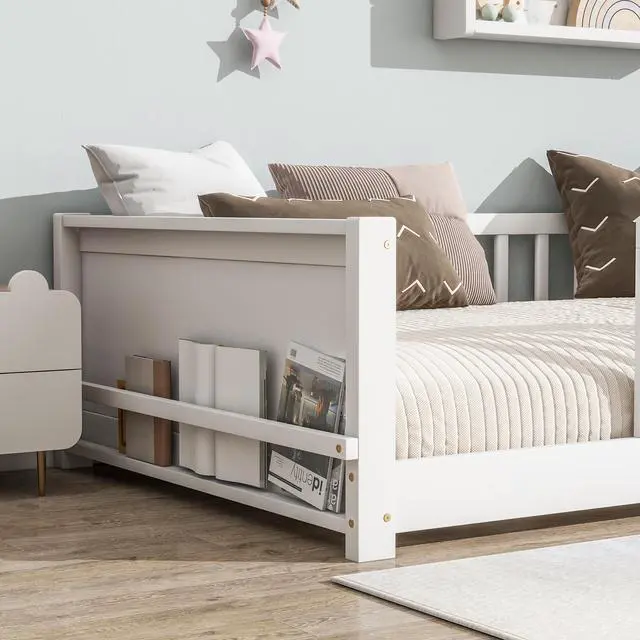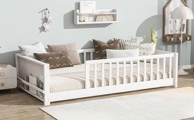 #1[Practical and Protection Design] The floor bed is an ideal place to sleep and have fun in the slatted bed platform. The bed is most suitable to those compact rooms and limited space with guardrails around the bed to protect from any accidental falling off.