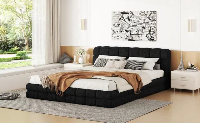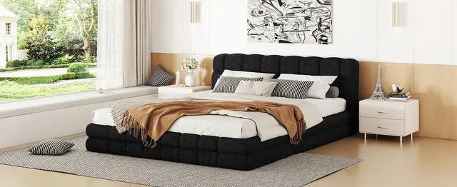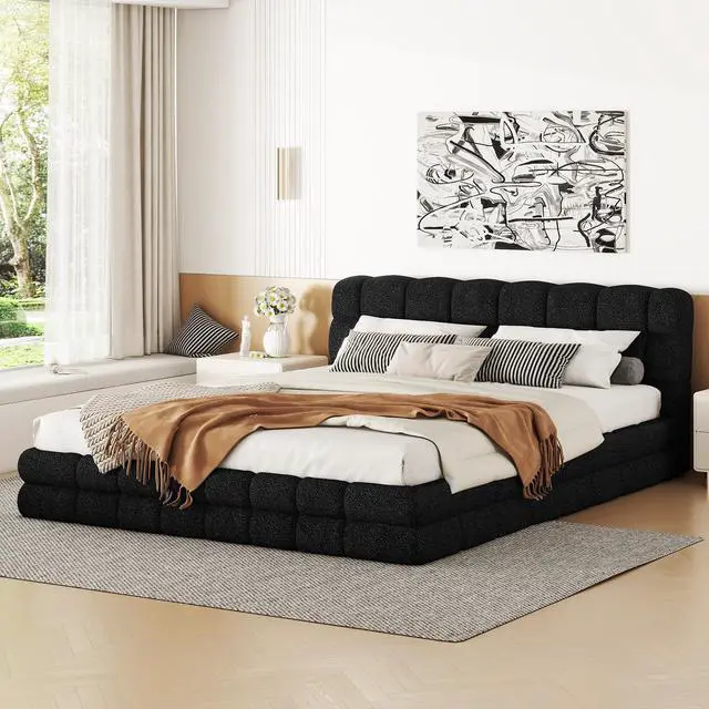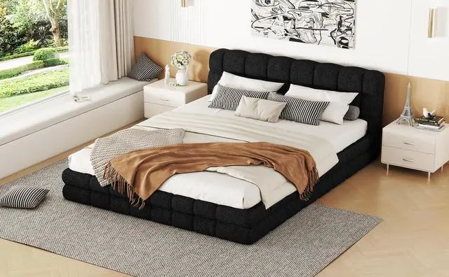 [Upholstered Platform Bed] Elegant style upholstered in carefully-selected fabric, features stitching details, this bed not only suits any home décor, but is timeless in its design.
