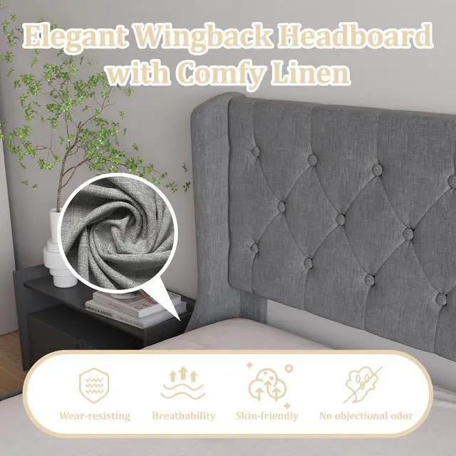 THICK UPHOLSTERED HEADBOARD: Dense foam padding brings an excellent sense of wrapping and support; Sanded Linen fabric has both abrasion resistance and soft touch