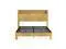 Queen Size bed frame with storage headboard, built-in charging station, wavy curved lines design, silent operation, metal support, Natural