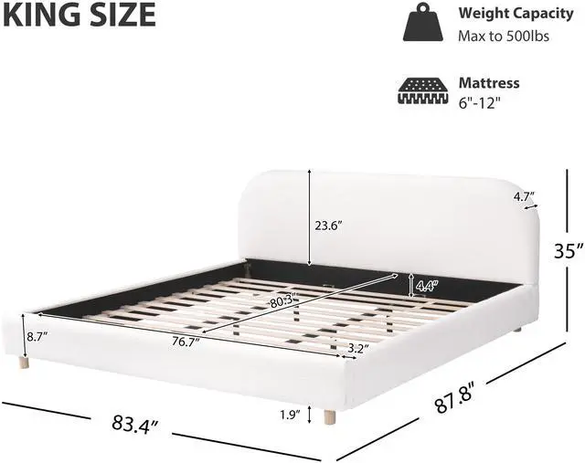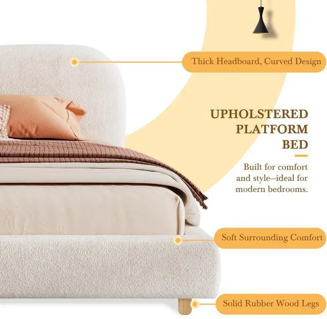 Sturdy Structure: This platform bed frame queen size adopts a metal frame structure with a wooden slats system to support the mattress, ensuring the firmness and stability of the upholstered bed frame.