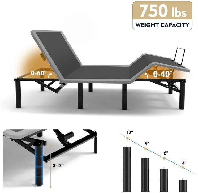 Sturdy bed legs: Equipped with 8 bed legs, the bed frame is made more stable. Moreover, the bed legs are adjustable in 4 sizes, namely 3", 6", 9", 12"