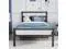 Headboard design: a metal platform bed frame with a headboard is a durable and stylish option for any bedroom. The heavy-duty metal slats provide strong support for your mattress without the need for a box spring, and the platform design helps to eliminate noise and ensure a peaceful night's sleep.