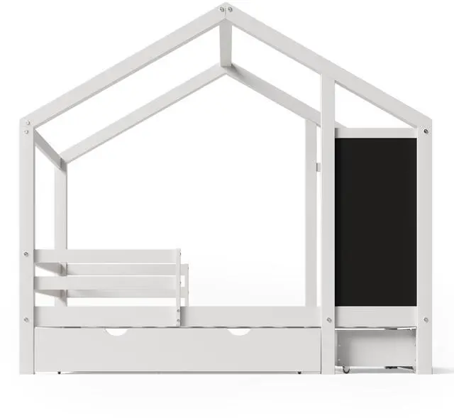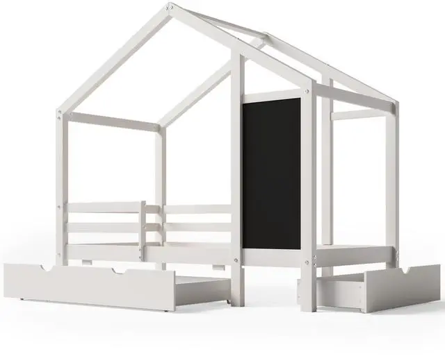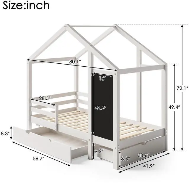 Combining practicality and creativity: The bed has a general roof shape, which expands the activity space. The classic house shape with a 33.5 *16 inch blackboard is a cost-effective bed that combines entertainment and sleeping functions. And the unique design allows you to add an imaginative and fun sense of creativity to your child's bedroom.