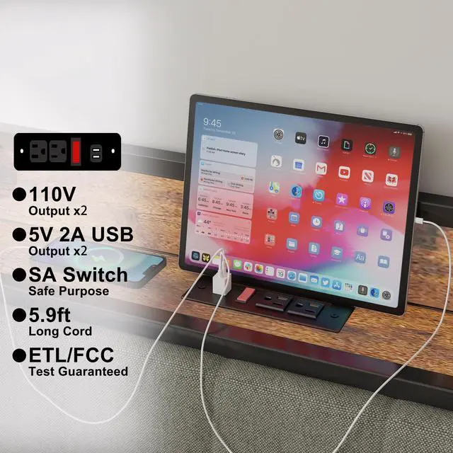 Stay connected with our uniquely designed headboard featuring 2 Standard Plug Outlets & 2 USB Ports, accompanied by a 5.9 ft long power supply cord for convenient charging. Keep your gadgets, from smartphones to reading glasses, within easy reach.
