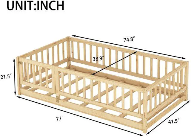 [Floor Bed with Fence and Door]The four guardrail of the montessori floor bed are not truncated, so our twin floor bed is more stable than a regular floor bed. There is a small door that can be opened and closed, which increases the interest of the montessori floor bed and creates a more safety sleeping space.