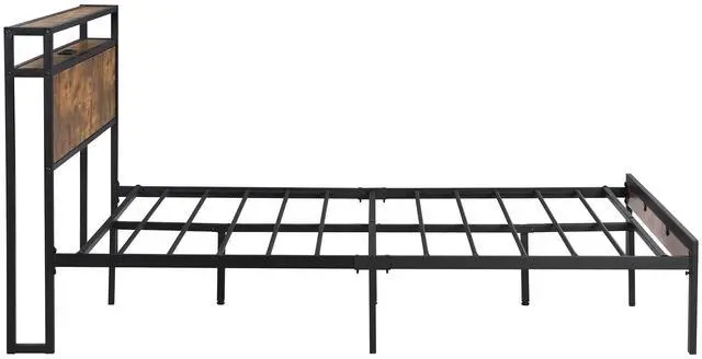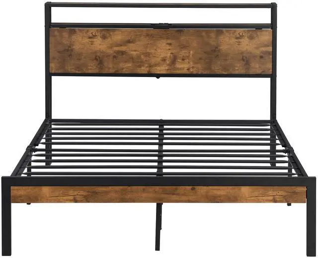 Metal Platform Bed Frame with Wooden Headboard and Footboardstrong steel metal structure for durability & stability, quiet, noise free and large bearing capacity