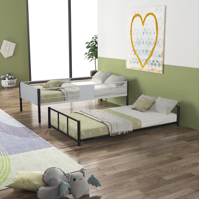 Versatile Design: This bunk is not just a normal bunk bed. The ladder is switchable freely to another side perfectly fitting your room design. Beyond that, when you need two beds not just a bunk bed, its trouble-free to transform your bunk bed into two single twin-sized beds. It fits all your demand.