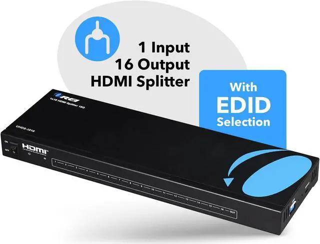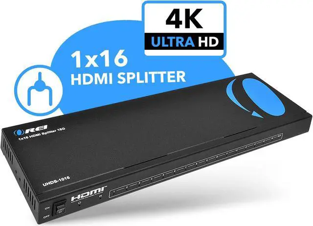 The OREIKEY_TAB UHDS-1016 is a reliable distribution powered splitter that will take HDMI 2.0 signal up to 4K@60Hz and duplicate the signal to up to 16 HDMI displays simultaneously, creating an impressive lossless image or audio transmission via HDMI cable.