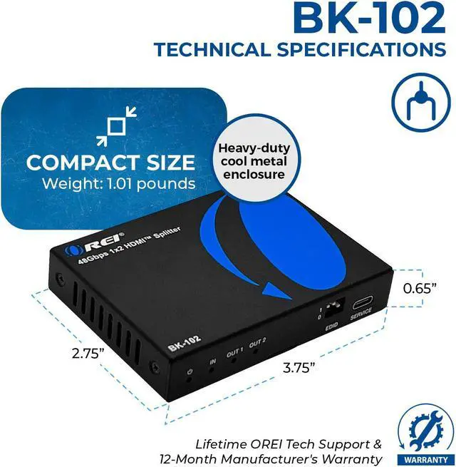 The BK-102 Splitter is an advanced solution for splitting single HDMI signal to 2 HDMI outputs synchronously, with video resolution up to 8K@60 4:2: 0 12bit.