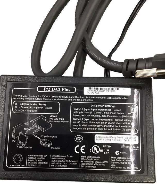 Package Includes: 1 Extron VERSA TooLs P/2 DA2xi VGA Distribution Amplifier w/Adapter