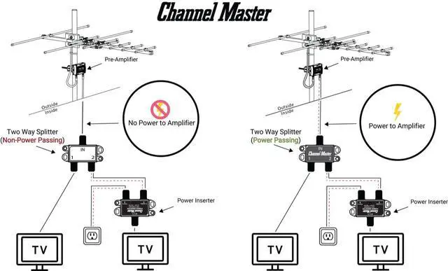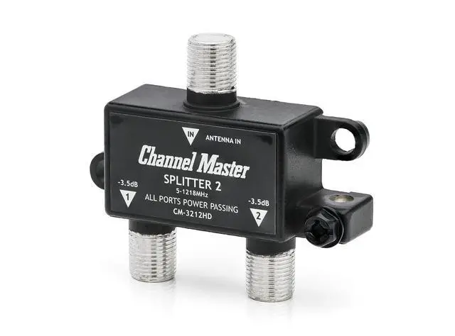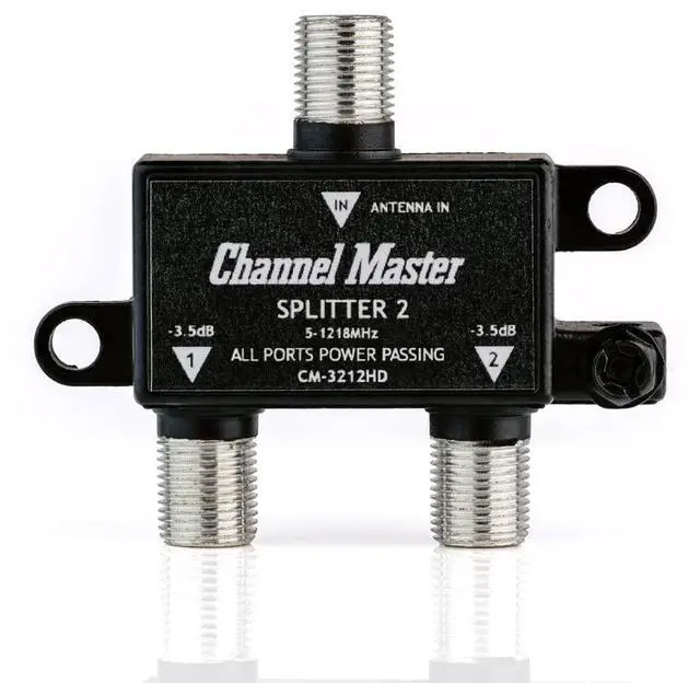 Splitter 2 | 2-Way Splitter Distributes Digital HDTV Antenna Signal to 2 TVs, One Input and Two Outputs, Power Passing for Preamplifiers and Boosters, Low-Loss Design, Indoor/Outdoor