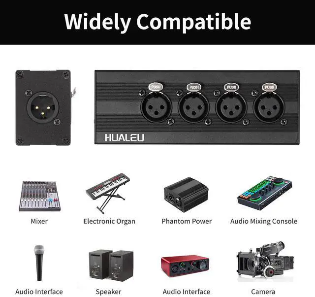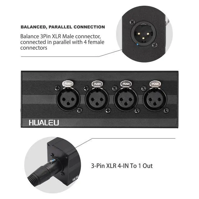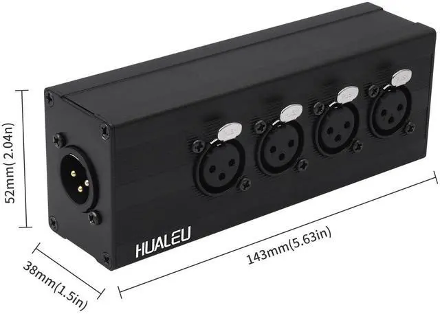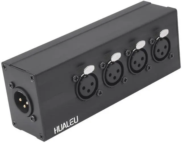 The HUALEU 3Pin XLR 1 Male to 4 Female Splitter is a high-performance audio adapter designed to merge signals from four XLR microphones or audio devices into a single output. Built with a rugged aluminum alloy shell, this splitter ensures durability while reducing electromagnetic interference for pristine sound quality.
