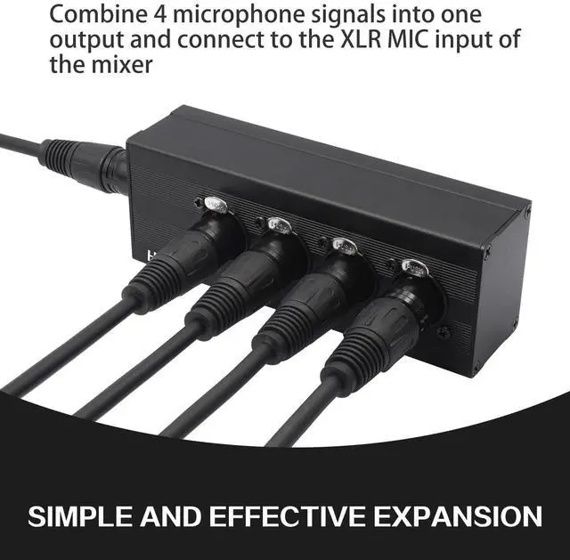 Need to combine multiple mic signals into one channel? This XLR 4 in to 1 Out Audio Splitter is the perfect solution for podcasters, musicians, sound engineers, and event organizers who require efficient signal management.