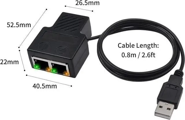 [Note]This Ethernet Splitter It equipped with a 0.8 m USB charging cable, can support charging. Cannot be used without power connection. Two female ports are concurrently usable.