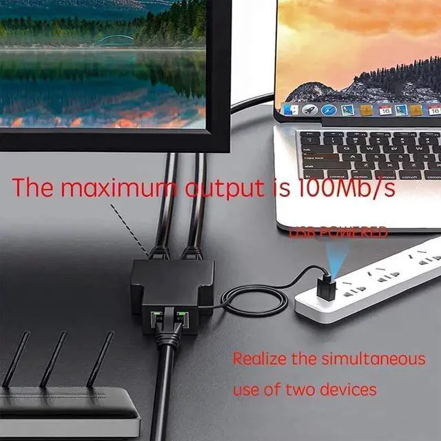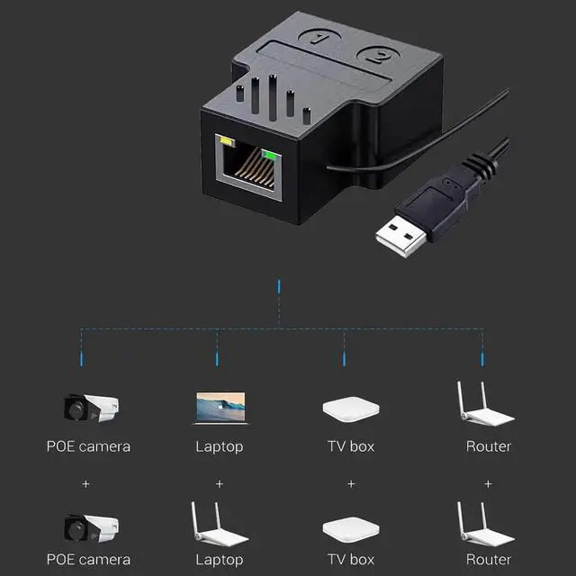 ![Alt view image 4 of 6 - Ethernet Splitter, 100Mbps Ethernet Splitter 1 to 2[2 Devices Simultaneously Networking], LAN Splitter Adapter with USB Power Cable, Internet Splitter for Cat5/5e/6/7/8 Cable](https://c1.neweggimages.com/productimage/nb640/C1JGS2603240DI9WZ8A.jpg)