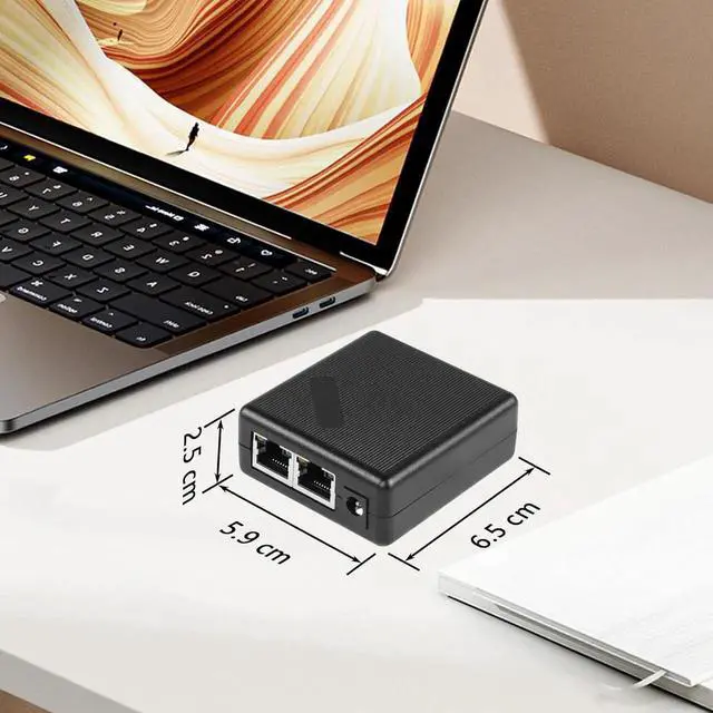 Gigabit Ethernet Splitter RJ45 Network Splitter 1 to 2 1000Mbps with DC Power Supply Adapter