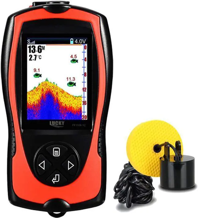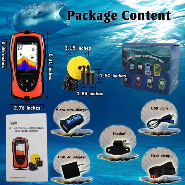 Various features settings: Lucky portable fish finder is with updated underwater contour display(3 kinds of display. You can choose, more clear and professional). Also, set up sensitivity, screen brightness, depth range, zoom, depth alarm, fish alarm, fish icon, units(FT/M /)alter and language by yourself. Go fishing with the fish depth finder in different ways, such as ice fishing, river fishing, sea fishing, shore fishing, kayak fishing, etc. The bracket allows you to attach the sensor transducer to your boat or kayak.