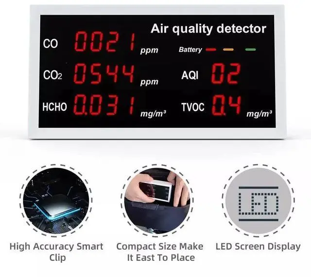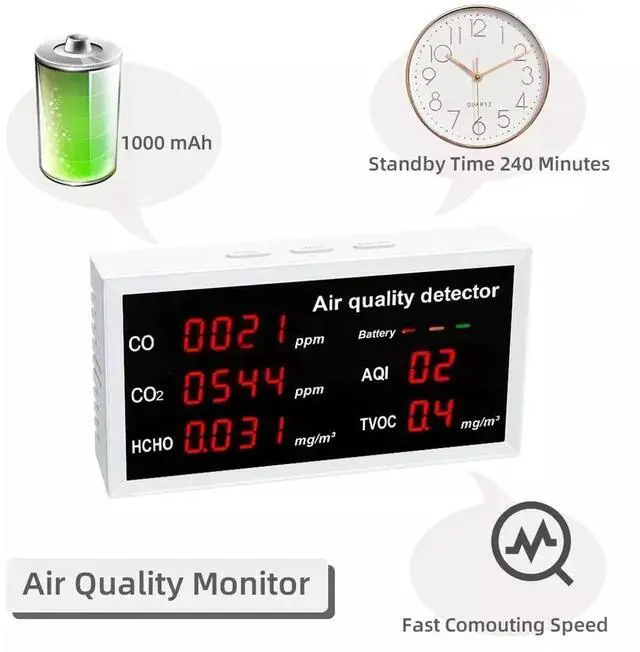 Detection anytime, Taking care of family's health - Detect five substances(HCHO CO2 CO AWI TVOC) easily