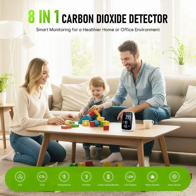 Life-Saving CO2 Alarm This smart CO2 detector helps protect you from hidden dangers like gas leaks, wildfire smoke, or poor ventilation. The moment CO2 levels climb above safe limits, it sounds a loud alarm right awayso you have time to react and keep your loved ones safe