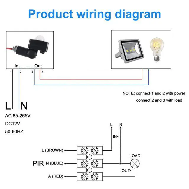 Blue for neutral (N), brown for fire wire input (L), red for fire wire output (LO), be careful not to connect 3 wires wrongly, otherwise the