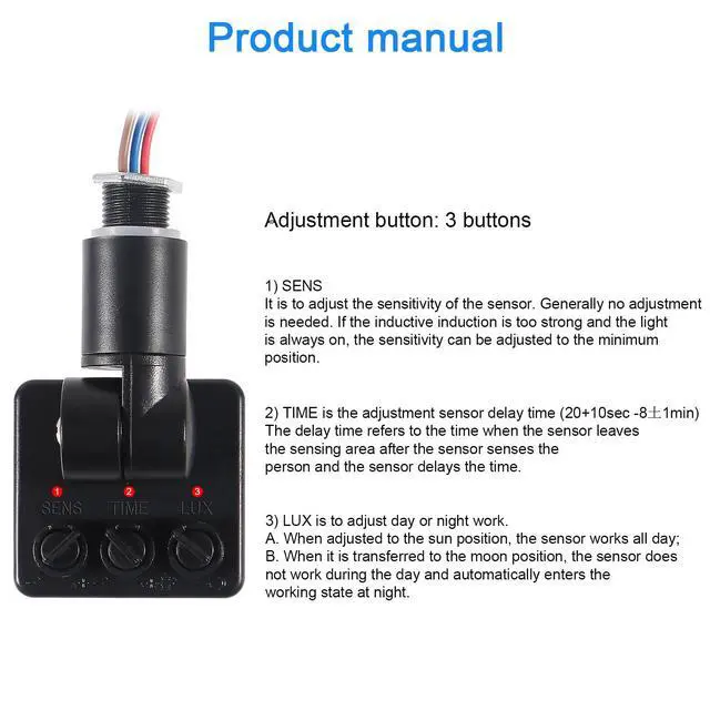 The delay time refers to the time when the sensor leaves the sensing area after the sensor senses the person and the sensor delays the time.