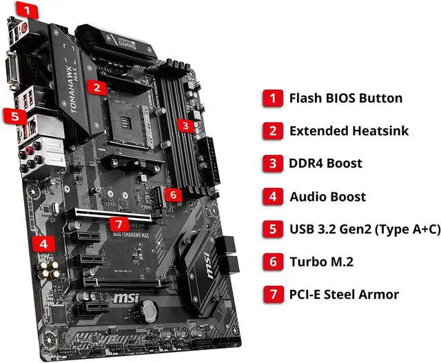 The MSI B450 motherboard platform is design optimal game experience. Supports 1st- 2nd and 3rd Gen AMD Ryzen / Ryzen with Radeon Vega Graphics and 2nd Gen AMD Ryzen with Radeon Graphics / Athlon with Radeon Vega Graphics Desktop Processors for Socket AM4.