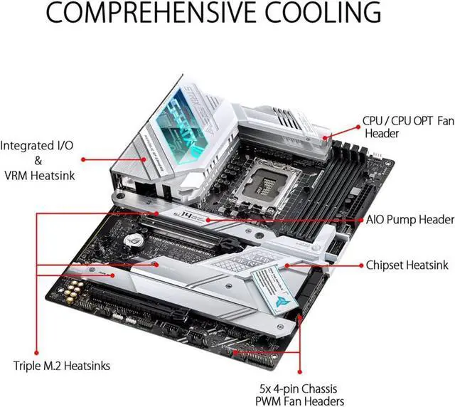 Optimized Thermal Design: Integrated I/O cover and VRM heatsinks with high conductivity thermal pad, four onboard M. 2 heatsinks and M. 2 backplate for the M. 2_1 slot, High-performance