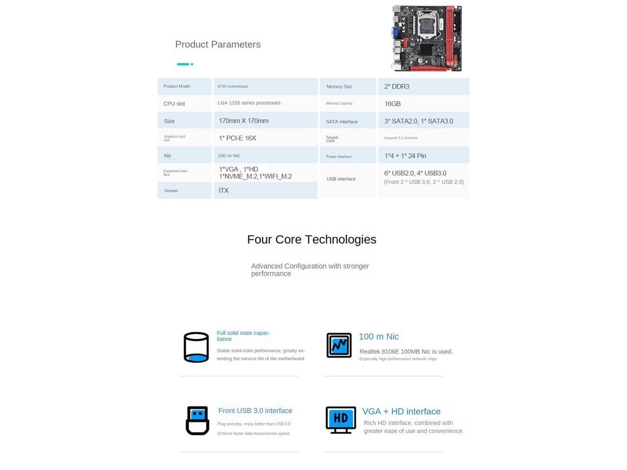 B75 (B75A) LGA1155 Motherboard+I3 2120 CPU+SATA Cable Supports 2XDDR3 Slot NVME M.2+WIFI M.2 USB3.0 SATA3.0 Motherboard