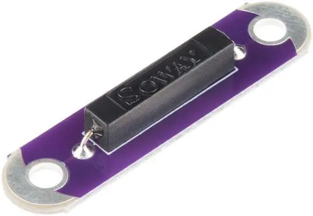Key Features: Great for use in wearables Reed switch is insulated and plastic coated for durability with wearable use Mechanical switch activated by a magnet Can carry up to a 1A and 0.25A while switched The LilyPad Reed Switch is a simple breakout for a reed switch that will make it easy to use in e-textiles circuits in exactly the same manner that you can currently use the LilyPad Button and Switch. In order to make it more durable for wearable use, we’ ve used a different style of reed switch, which is insulated. This means that the same glass switch is encased in black plastic, making it much more difficult to break, but it works in exactly the same manner. A reed switch is a simple mechanical switch that is activated via a magnet. When the device is exposed to a magnetic field, the two ferrous materials (reeds) inside the switch pull together, and the switch closes. When the magnetic field is removed, the reeds separate and the switch opens. This makes for a great non-contact switch that can carry up to 1A and 0.25A while switched.