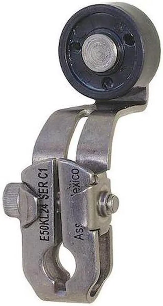 Limit Switch Lever Arm, Actuator Type Standard Roller, For Use With E50AR16P, Mfr. No. E50AR1, Arm Length 1.5 in, Roller Position Inside Offset, Roller Dia. 0.75 in, Roller Width 0.32 in, Arm Material Stainless Steel, Roller Material Nylon, Arm Width 0.75 in, Arm Depth 2.21 in