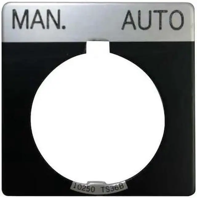 Legend Plate, Square, Legend Man-Auto, For Use With 30.5 mm Selector Switch and Roto-Push Operators, Legend/Background Color Black, Material Aluminum, Height 1.75 in, Width 1.75 in, Diameter 30 mm