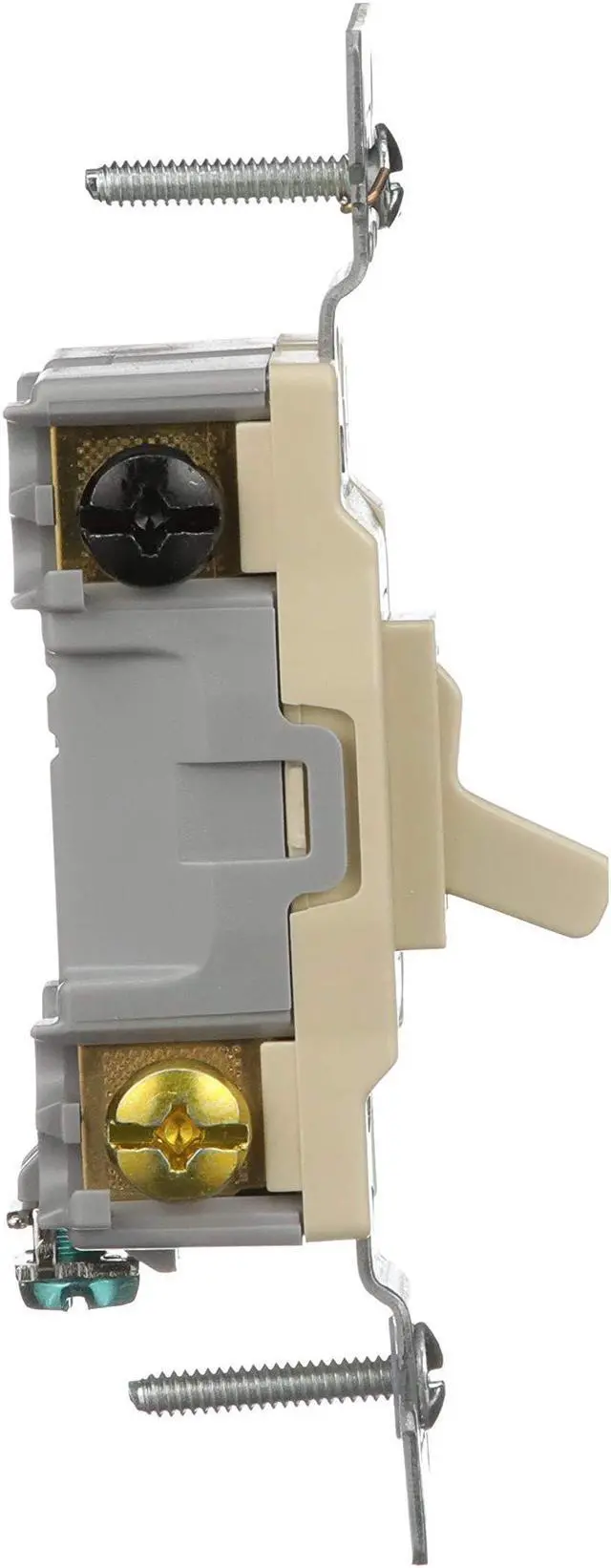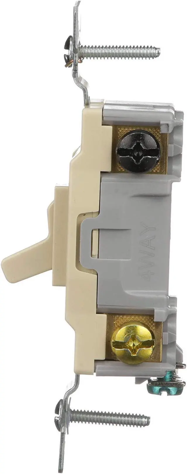 Eaton toggle switch, #14-10 AWG, 15A, Wall, 120V, Side and push, Grounding, Ivory, Four-way, Polycarbonate