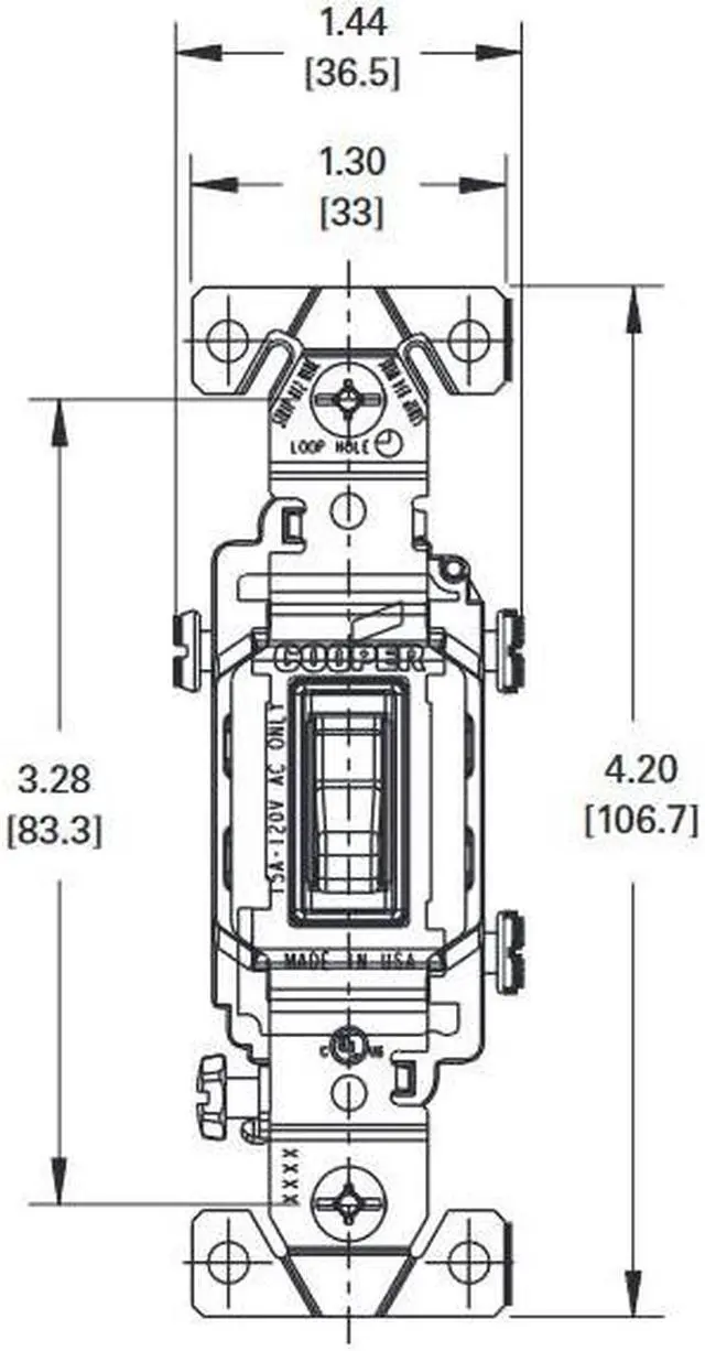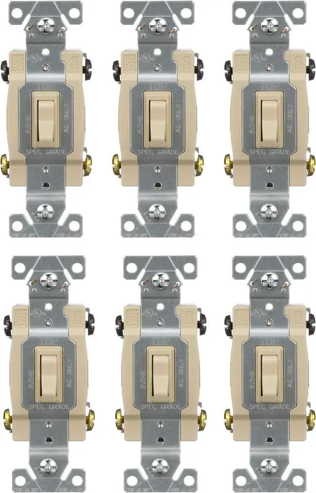 The Eaton 1242-7V-BOX 15-Amp, 120-Volt Standard Grade 4-Way Framed Toggle AC Quiet Switch comes with longer, wider strap on toggle switches provides 40-percent more contact area to wall board. Virtually eliminates floating installations. Industrial design cam action mechanism insures quiet switch action. Patented built-in wire stripper for No.14 and No.12 wire to speed installation. Unbreakable top and bottom housing eliminates call-backs due to job site breakage. Patented built-in wire looper for pre-looping. Three way switches feature additional push-in common termination for feed-through tapping. Push-in terminals accept No.14 solid wire only. Side wire terminals accept up to No.10 solid or stranded wire. 4-Way, side wire and push wire wiring method. NAFTA compliant. Available in ivory color. Measures 1-1/6-Inch length by 1-4/9-Inch width by 3-4/5-Inch height. Whether a home's style is traditional, modern, casual, cozy or rustic, it will demand more from wiring devices than in years past. Eaton is dedicated to providing the up-to-date wiring device solutions; solutions that increase energy efficiency, increase productivity, promote safety at work and in the home, and produce reliable performance. Eaton is a trusted name in electrical products for over 175-years.