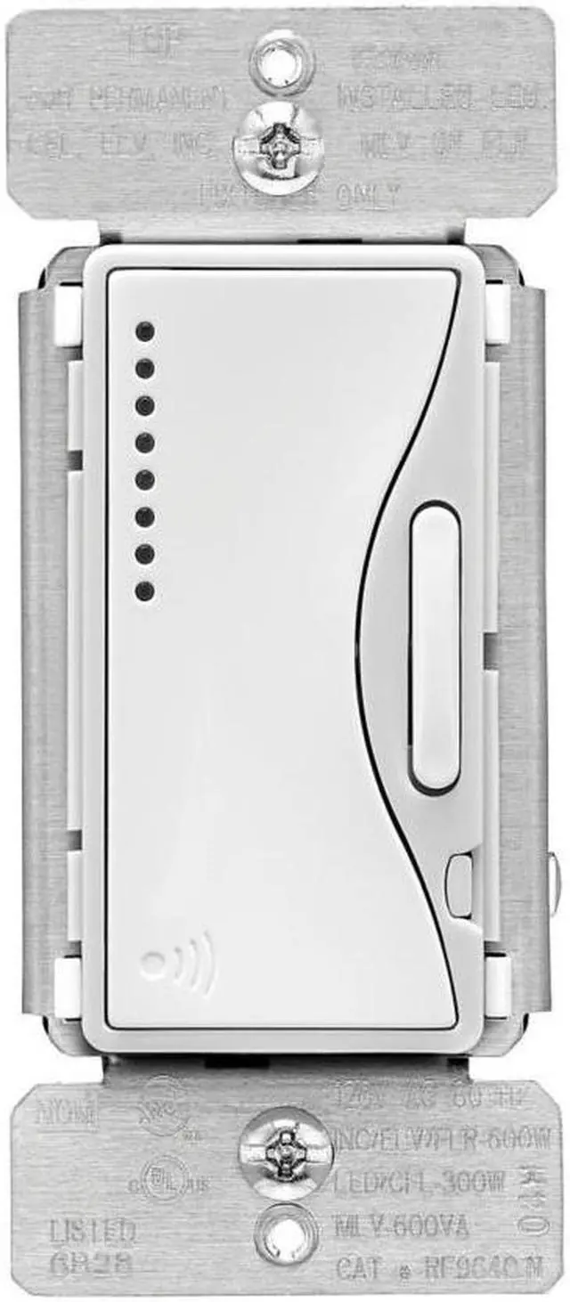 Eaton Z-Wave plus dimmer switch, White satin, Single pole, 120 Vac, 300W KEY_TAB Dimmable LED/CFL, 600W Incandescent, Halogen, Magnetic Low Voltage, KEY_TAB Electronic Low Voltage, Dimmer switch, Multi-location, 32F to 104F KEY_TAB (0C to 40C), flush mounting, single pole, three way, back and side wiring